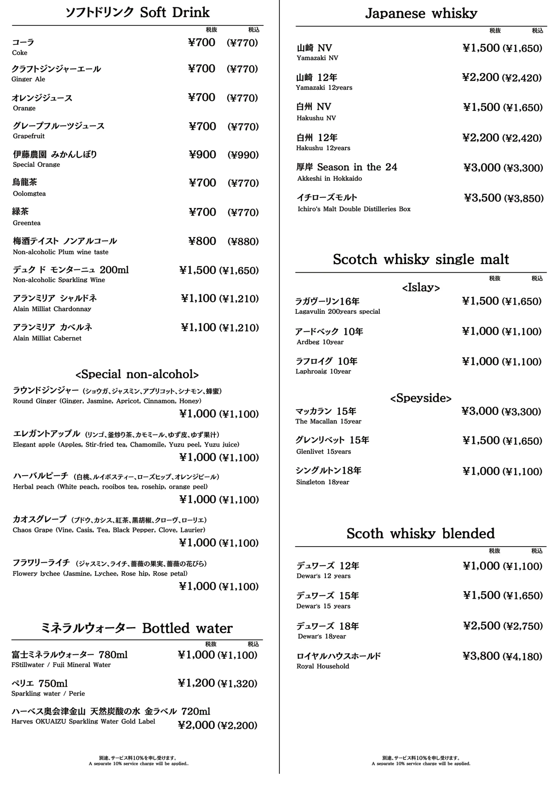 - Full Bottle 22,000円(税込24,200円)