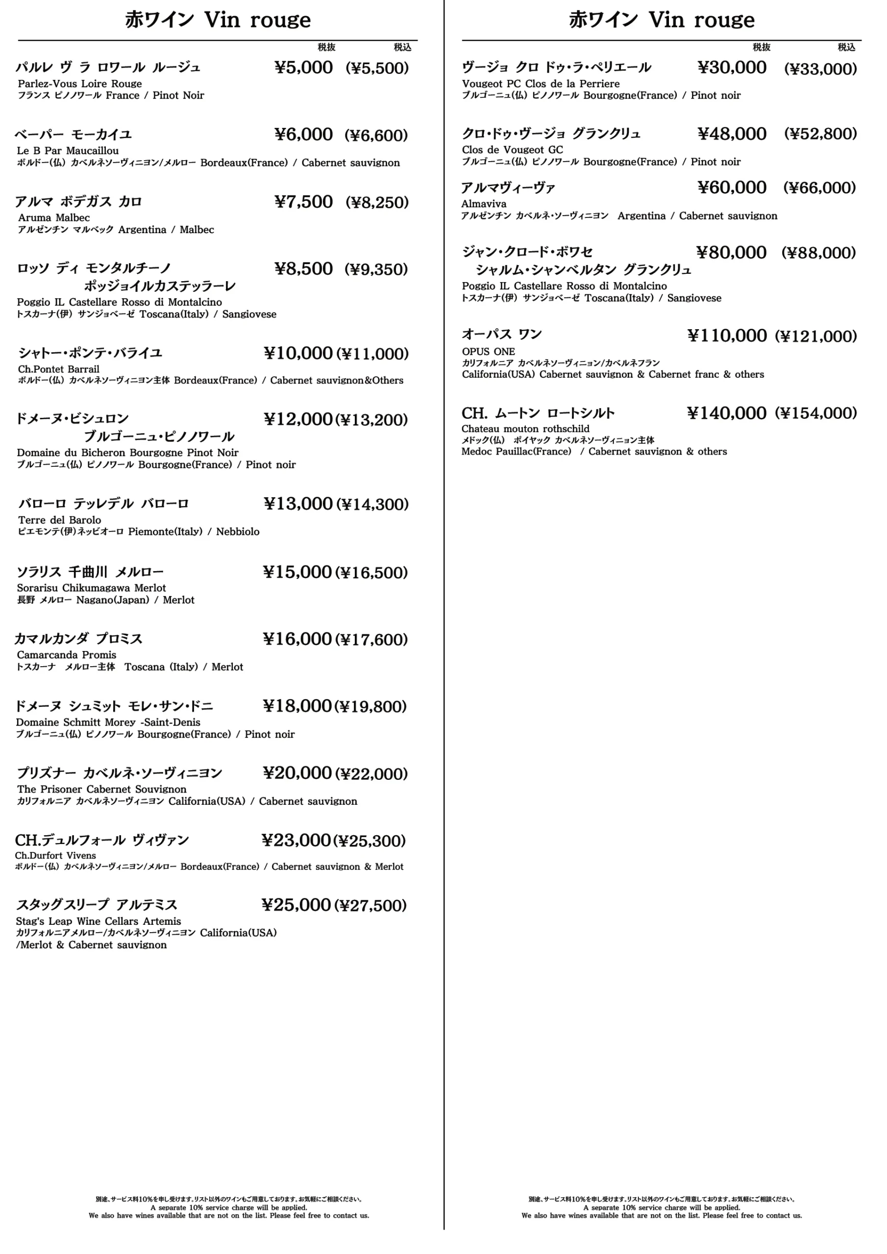 - Half Bottle 12,500円(税込13,750円)