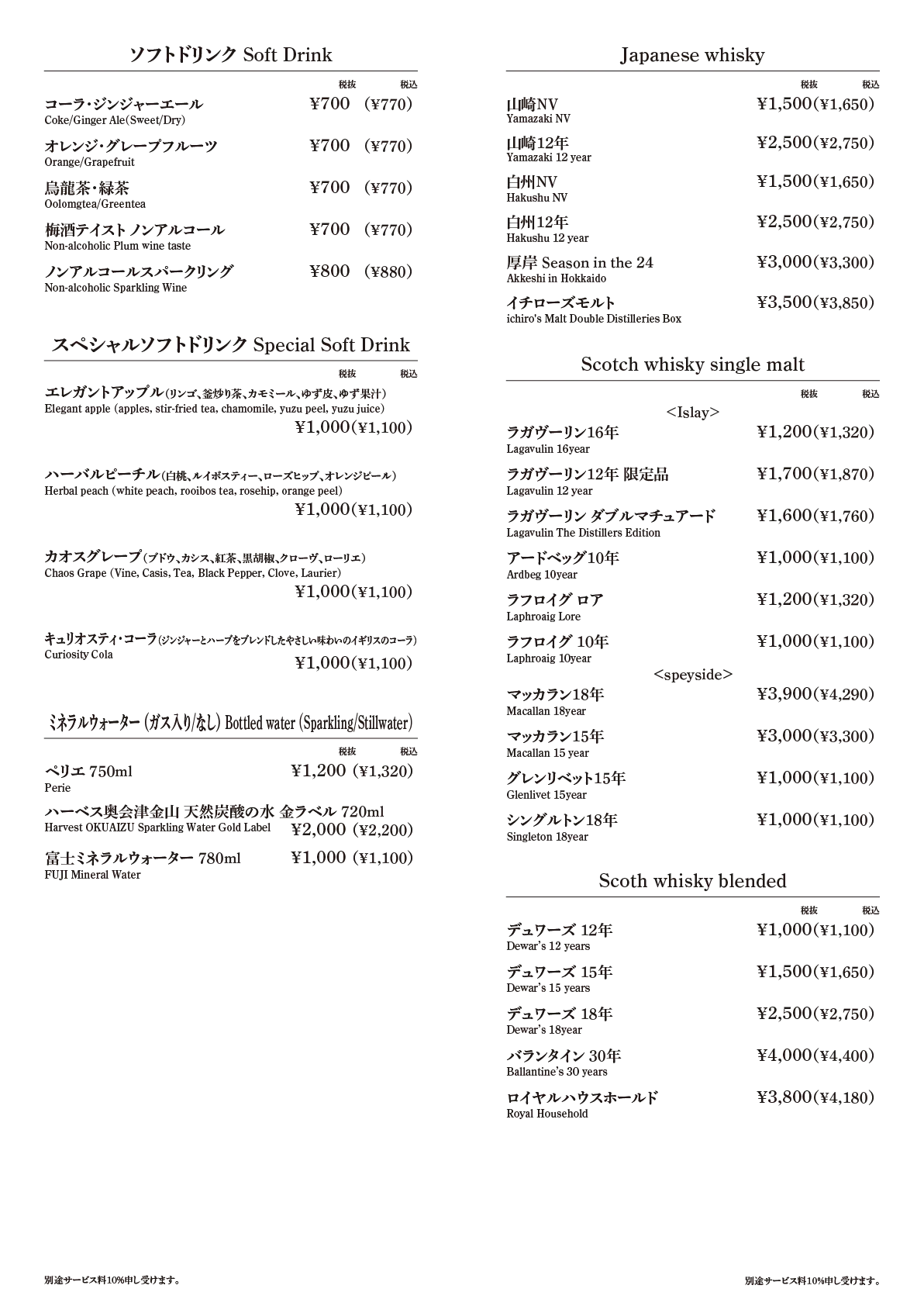 - Full Bottle 17,000円(税込18,700円)