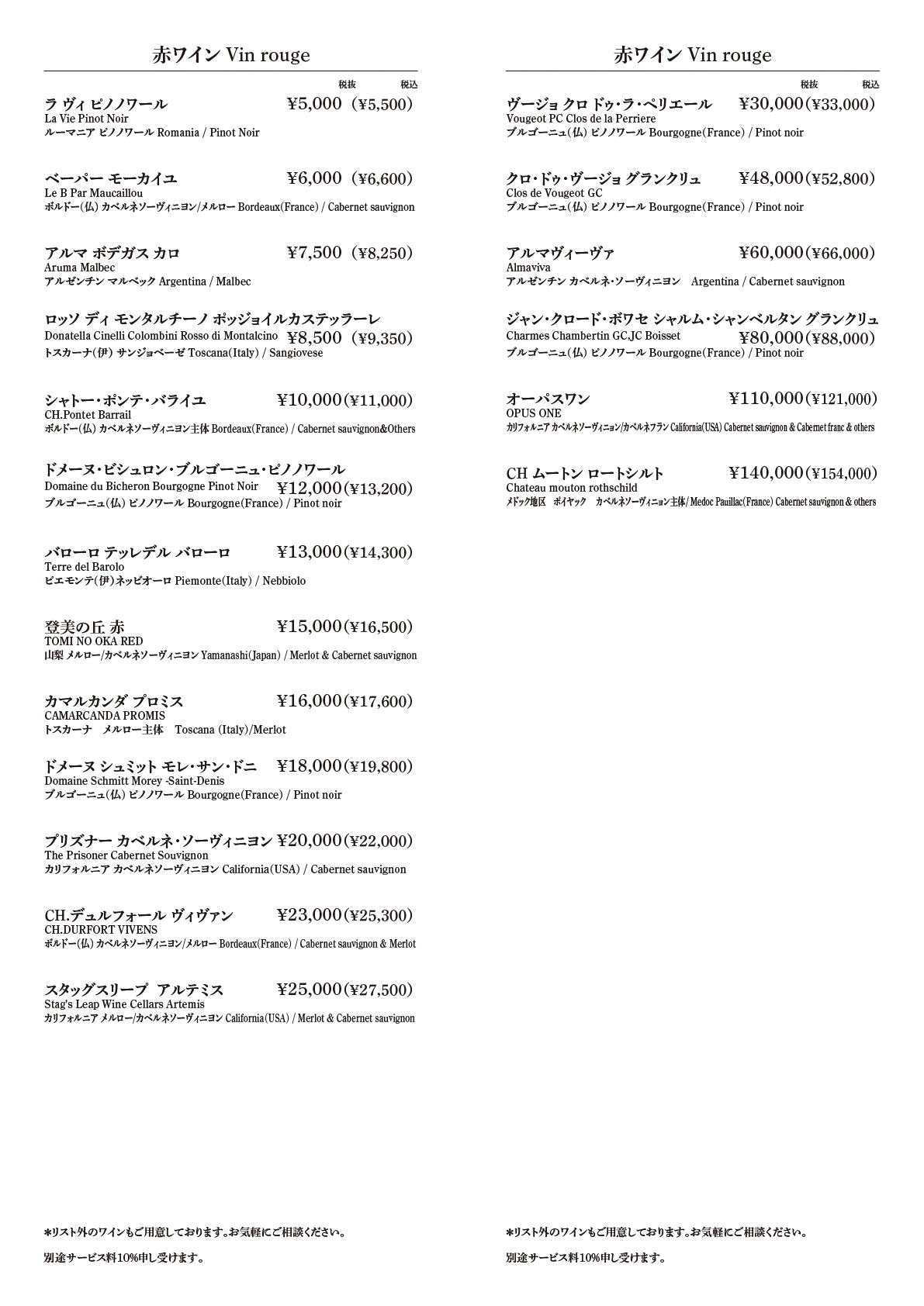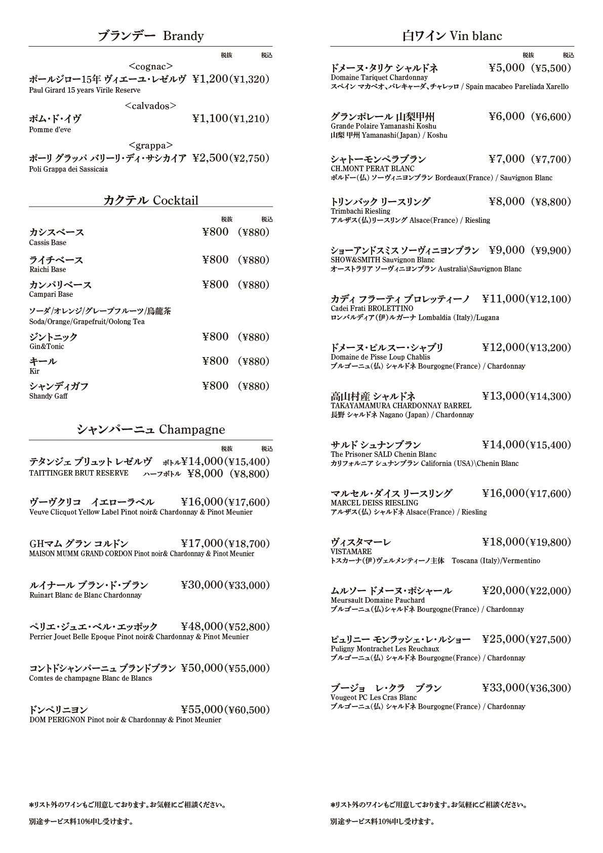 - Half Bottle 25,000円(税込27,500円)